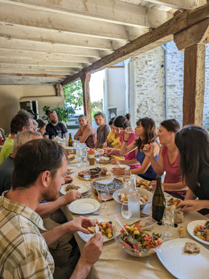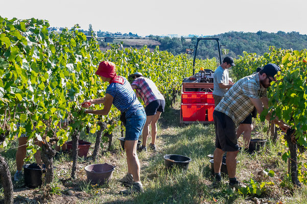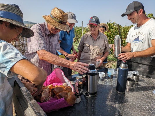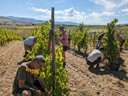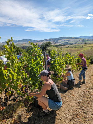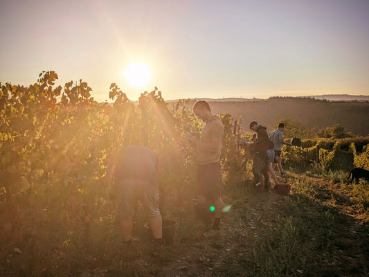 Pause de brioche et tablée copieuse de midi, où chacun reprend des forces, les vendanges promettent : un vin joyeux, attentif, philanthrope et humaniste, fruit d’une énergie collective.